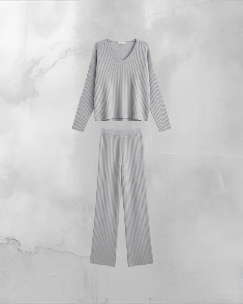 Det blødt strikkede stof med diskret struktur bevæger sig naturligt med kroppen – ideelt til en dag hjemme, en frokost eller en afslappet tur i byen.
