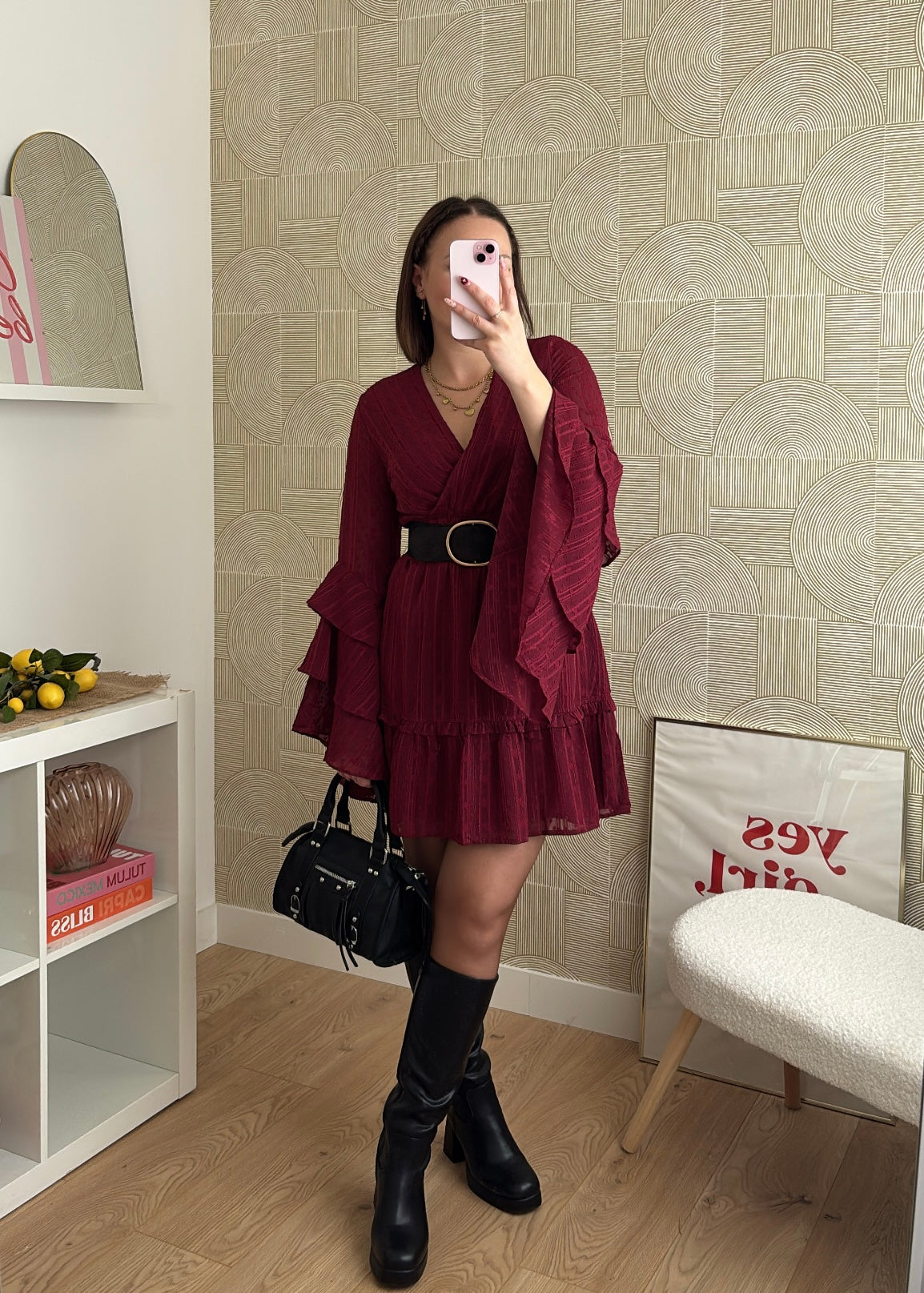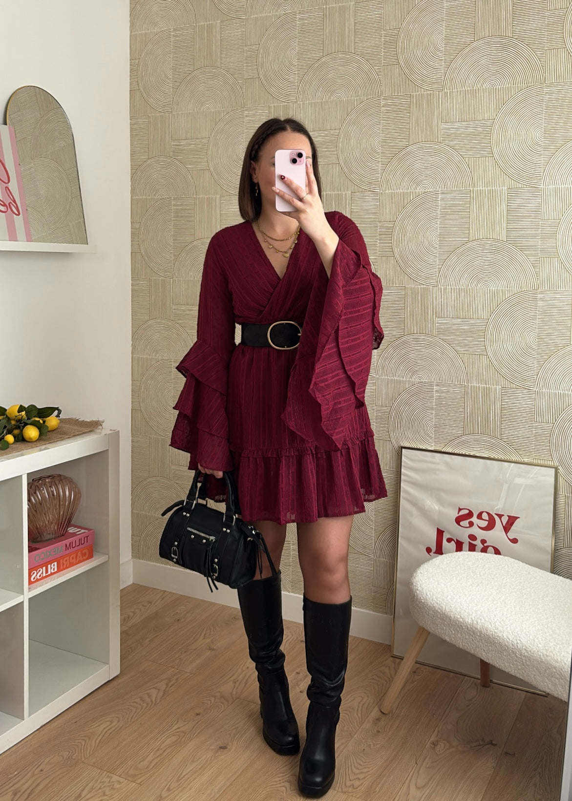 Féminine et élégante, cette robe patineuse dans les tons bordeaux est la pièce parfaite pour sublimer ta silhouette.
